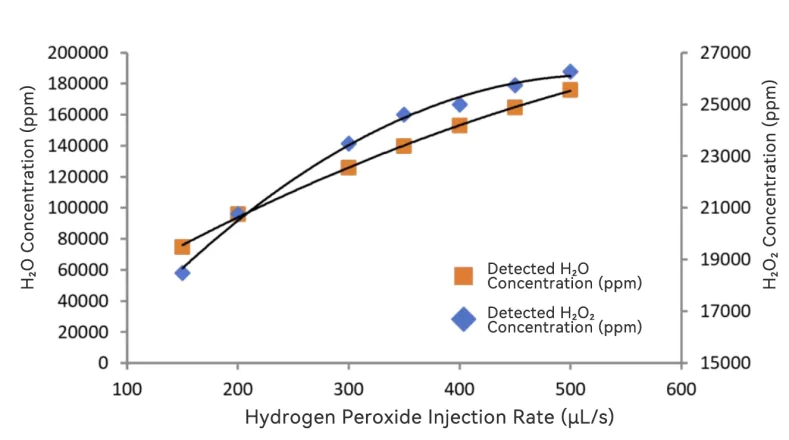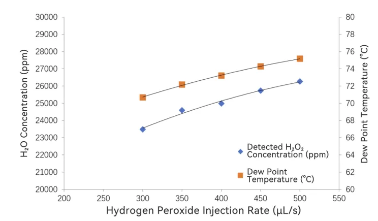 Real-time monitoring of H2O2/H2O concentrations allows for the precise calculation of dew point and relative saturation.