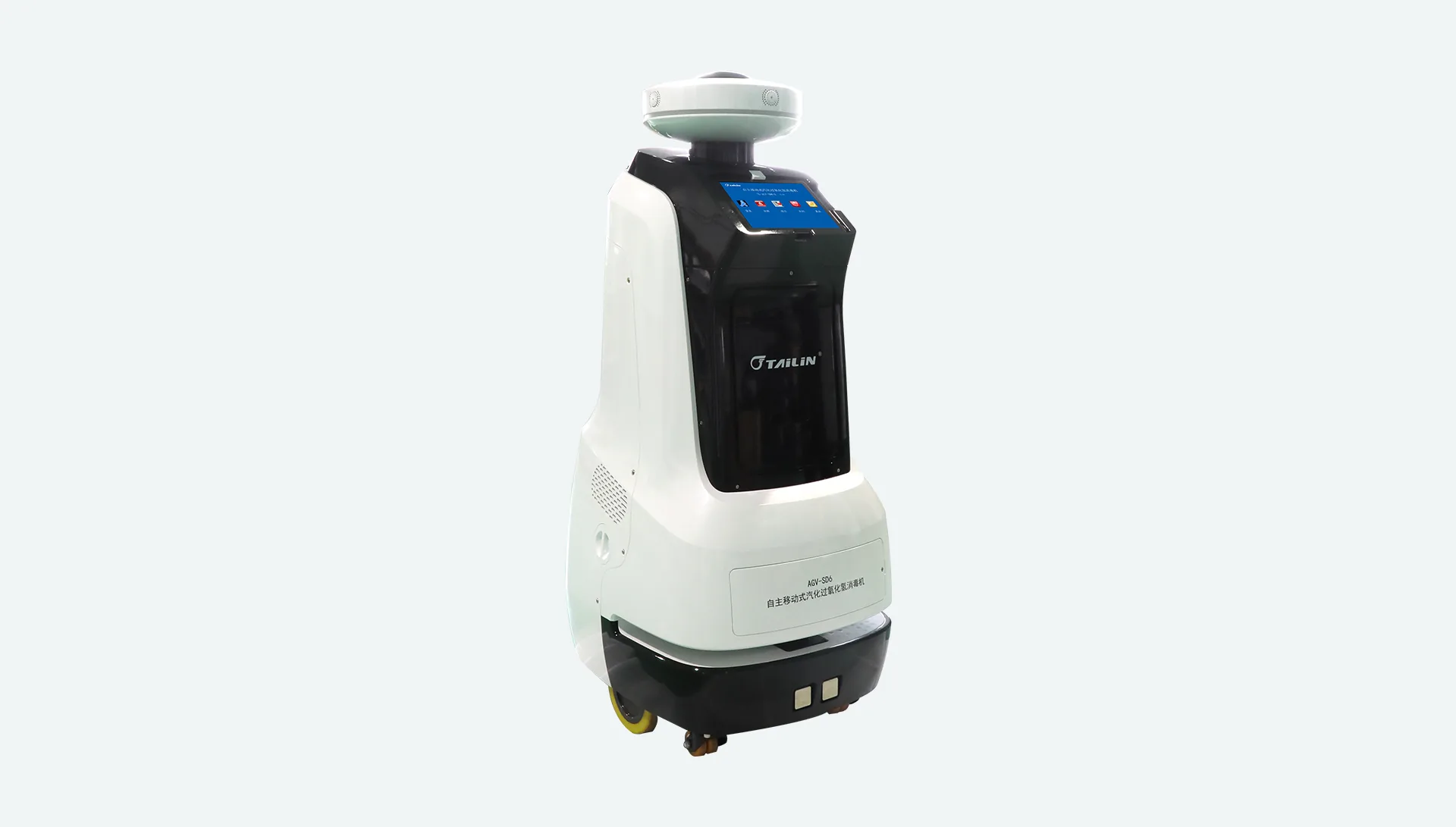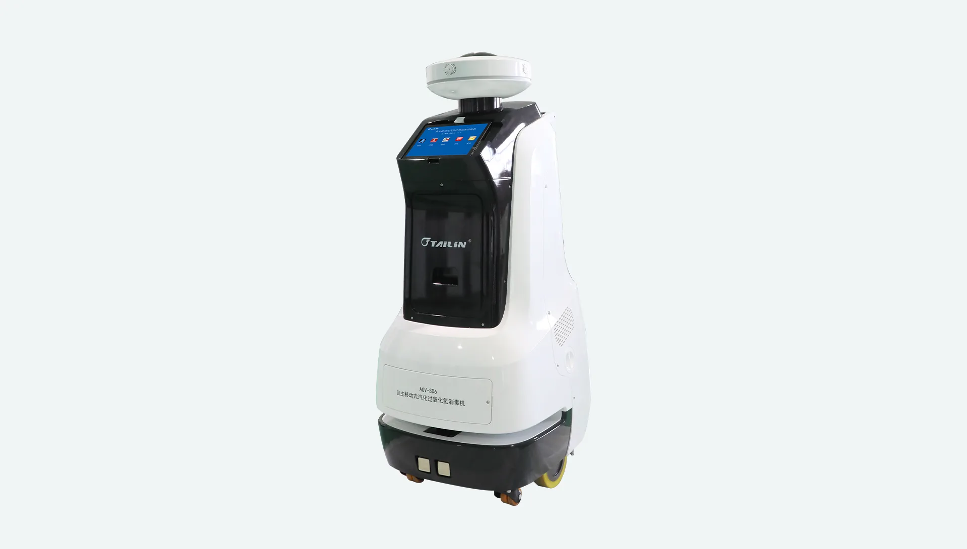 The AGV-SD6 is a hydrogen peroxide bio-decontamination/decomposition integrated robot that can effectively decontaminate enclosed spaces and handle post-disinfection residue in non-ventilated environments using its self-decomposition system.