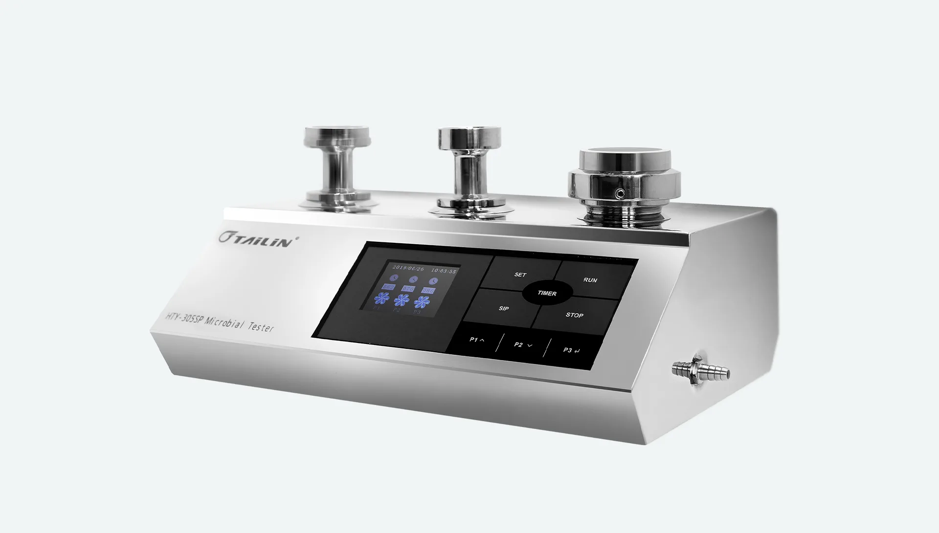 The HTY-305SP Microbial Limit Tester is a specialized device designed according to pharmacopeia requirements. It features three pump heads, SIP sterilization, high-performance diaphragm pump, and direct waste discharge. By using different pump heads with funnels or canisters, it forms a complete membrane-filtration setup. During testing, the sample is filtered to retain microorganisms on the membrane, which are then cultured into visible colonies for counting to determine microbial levels.