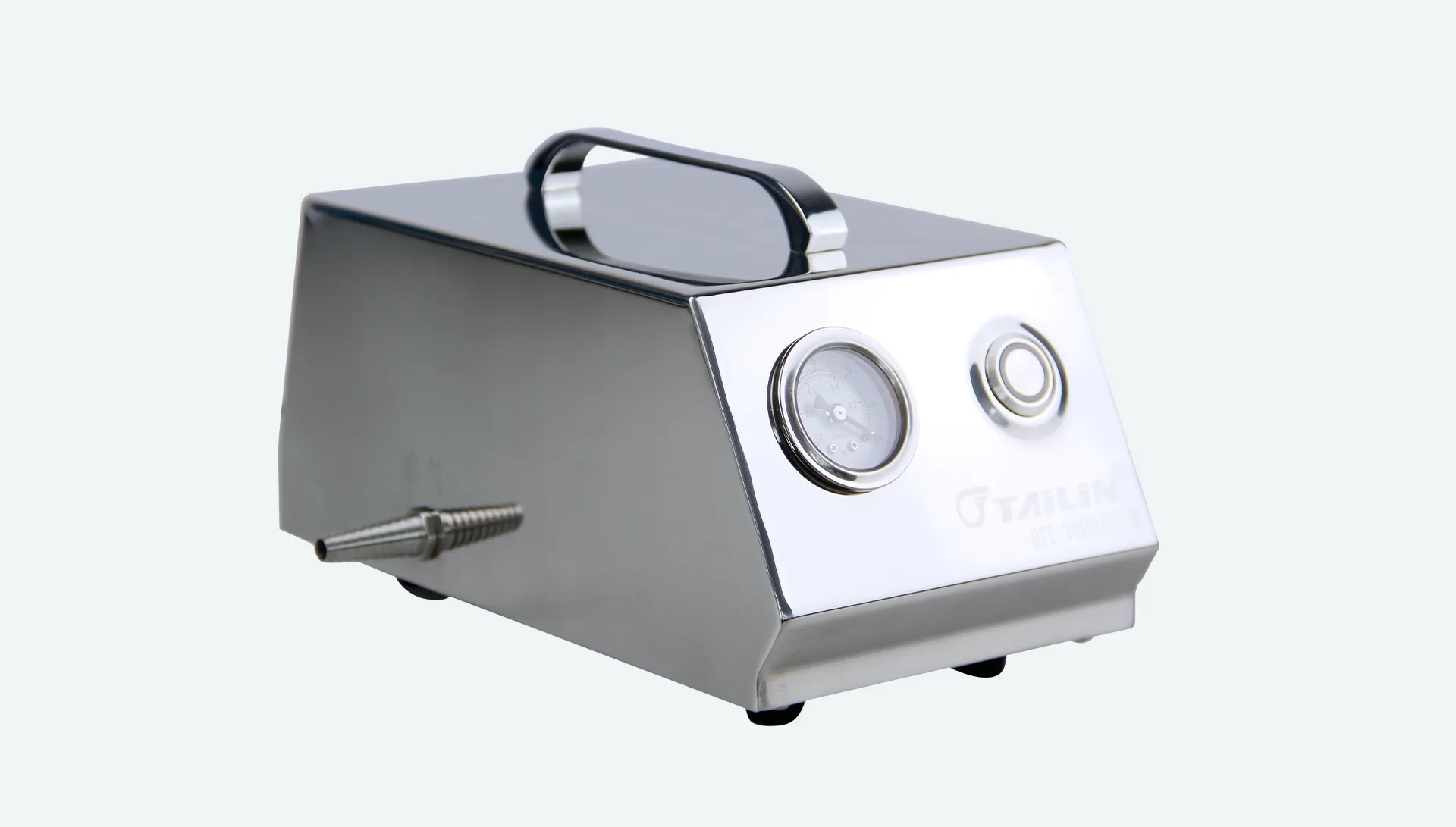 The HTY-30A vacuum pump is a specialized pump designed for microbiological testing. It features a compact form factor, simple operation, and easy cleaning and maintenance. The vacuum gauge displays the operating status in real time for clear monitoring. It can be paired with microbial limit test manifolds to perform microbiological testing using negative-pressure filtration, or used independently as a vacuum device.