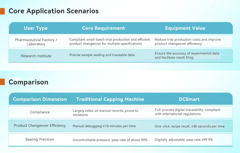 In the pharmaceutical industry, vial sealing integrity is the ultimate safeguard for drug safety—meeting global regulatory standards. Traditional capping solutions often lack consistency and traceability, which can lead to compliance risks.