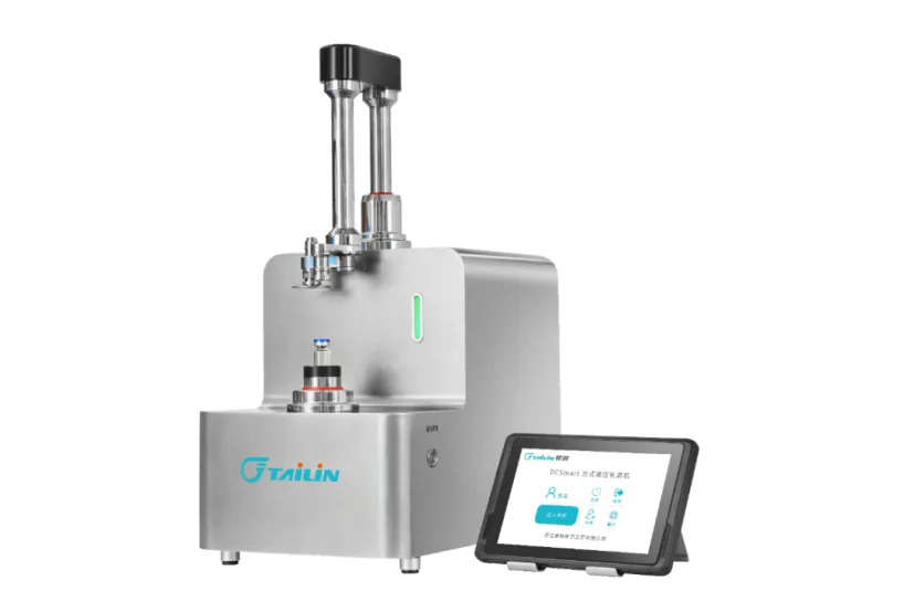 Current crimping equipment on the market mainly includes clamp-type and roller-type crimpers. clamp-type crimpers confirm the capping effect by controlling the structural stroke. This structure inherently prevents the digital control of parameters such as the degree of stopper compression during crimping or the final tightness. To address these pain points and meet the demand for high-quality, small-batch crimping,Tailin has launched the DCSmart wireless capping, a desktop mini capping machine suitable for sealing aluminum caps and aluminum-plastic caps for pharmaceutical bottles.