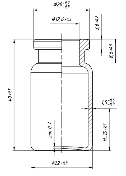 Figure 3 shows a schematic of the vial structure, featuring a bevel (chamfer) at the bottle mouth. Vials for different products also vary slightly in design (Figure 4). For example, lyophilization vials typically include an anti-pop-up feature that further enhances container sealing after crimping.